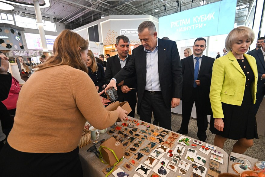 На каждом фото присутствует охранник. Источник - пресс-служба правительства ЛО