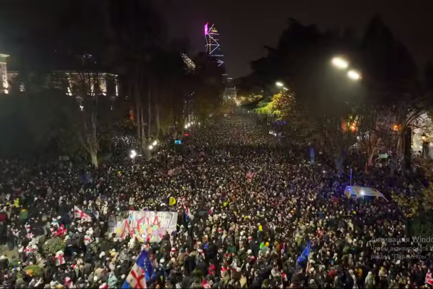 В течение последних трех ночей в Тбилиси можно наблюдать множество людей, собравшихся на главном проспекте, где происходят основные действия. Каждый вечер толпа собирается, чтобы выразить свои требования и протестовать против действий властей.