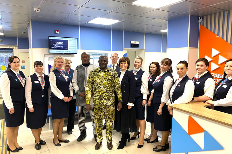 На площадке Тосненского кадрового центра состоялась международная встреча представителей Роструда, Федерального центра компетенций Минтруда России в лице руководителя спецпроектов Андрея Жданова, председателя комитета по труду и занятости населения Ленинградской области Аллы Астратовой и первого заместителя председателя комитета Тимофея Котова с полномочным послом Буркина-Фасо - господином Аристидом Р.Людовиком Тапсоба, министром государственной службы, труда и социальной защиты Буркина-Фасо Бассолма Базие, гендиректором по госслужбе Бурунди Эсперансой Хабониманой.