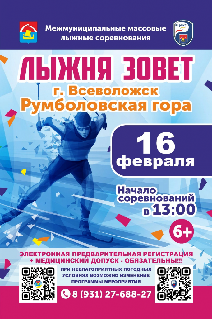 16 февраля 2025 года в 13:00 состоятся межмуниципальные массовые лыжные соревнования "Лыжня зовет".