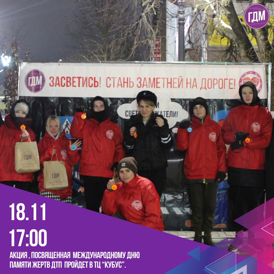 18 ноября в 17:00 в ТЦ "Кубус" мы приглашаем вас на важное событие — просветительскую акцию, посвящённую Международному дню памяти жертв ДТП.