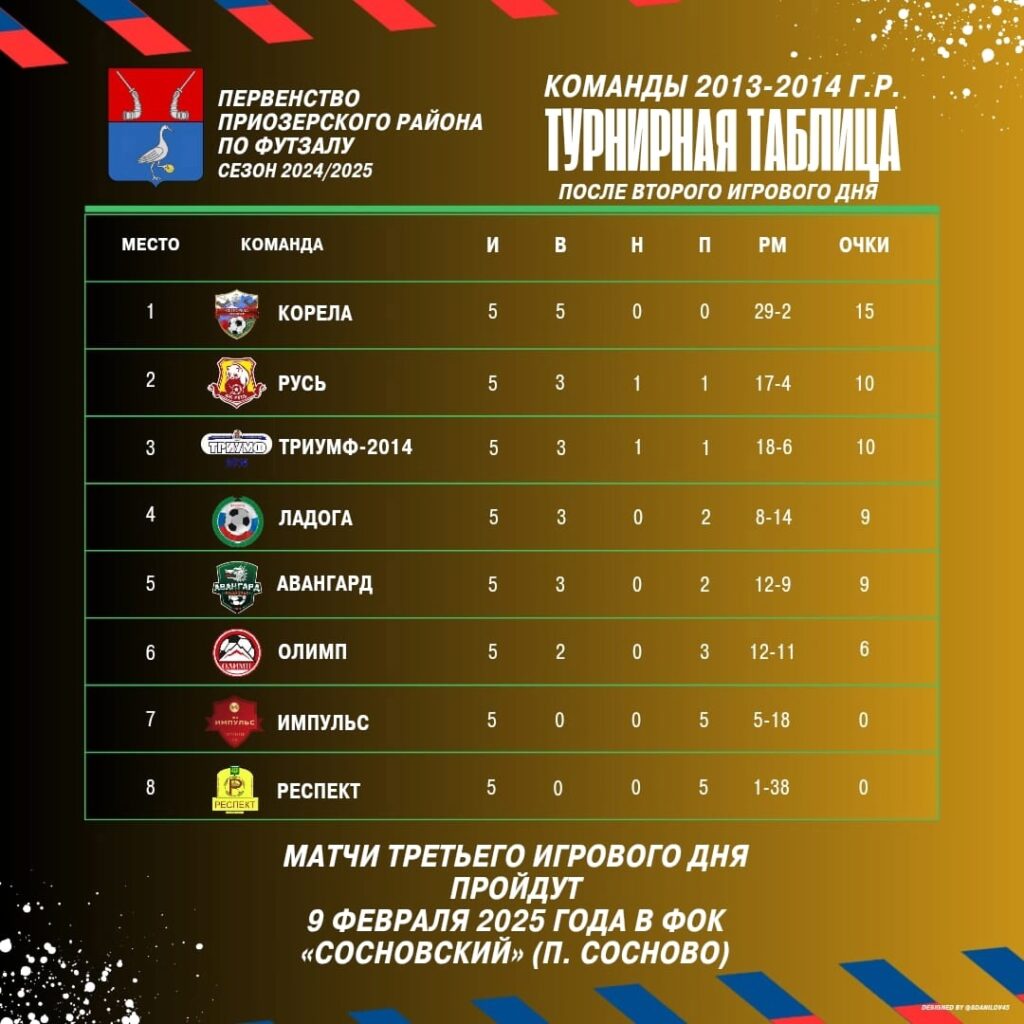 26 января в ФОК «Сосновский» пос. Сосново, прошёл второй игровой день Первенства Приозерского района по футзалу среди команд 2013-2014 г.р.