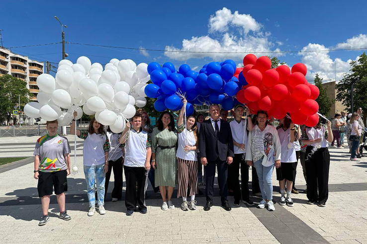 Сотни человек спели здесь хором гимн России, выступили с воздушными шарами в цвет триколора, а сейчас в городе продолжается праздничный концерт.