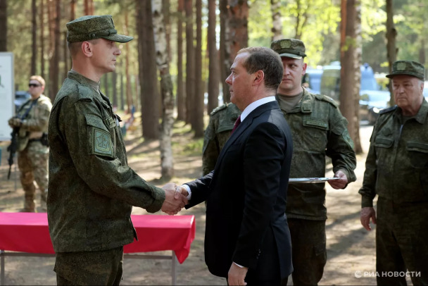 Как передает РИА "Новости" , Медведев также встретился с военнослужащими на полигоне "Песочненский" и наградил особо отличившихся.