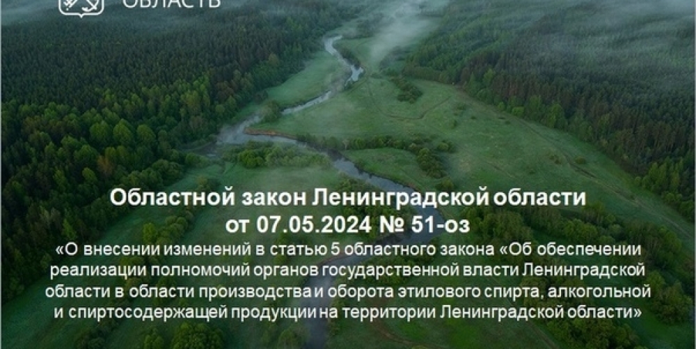 Согласно справке, областной закон Ленинградской области от 07.05.2024 № 51-ОЗ «О внесении изменений в статью 5 областного закона «Об обеспечении реализации полномочий органов государственной власти Ленинградской области в области производства и оборота этилового спирта, алкогольной и спиртосодержащей продукции на территории Ленинградской области» вступает в силу 1 сентября 2024 года.
