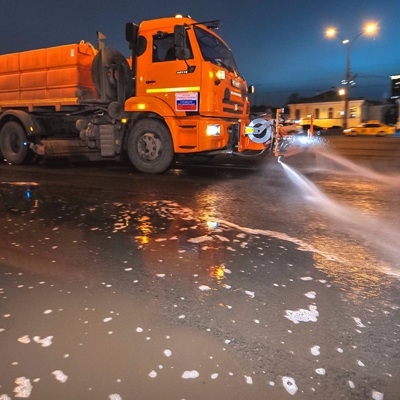 «Состав наносим в дневное время, чтобы ночные заморозки не повлияли на дорожную ситуацию. По заверению производителя, шампунь «Бионорд» не влияет негативно на обувь пешеходов и озеленение, что для меня крайне важно», - отметил и.о. мэра Андрей Накрошаев .