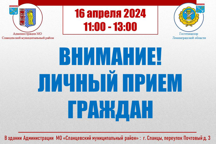 ВНИМАНИЕ! 16 апреля 2024 года начальник управления Ленинградской области по государственному техническому надзору и контролю Праздничный А.А. совместно с главой администрации Сланц