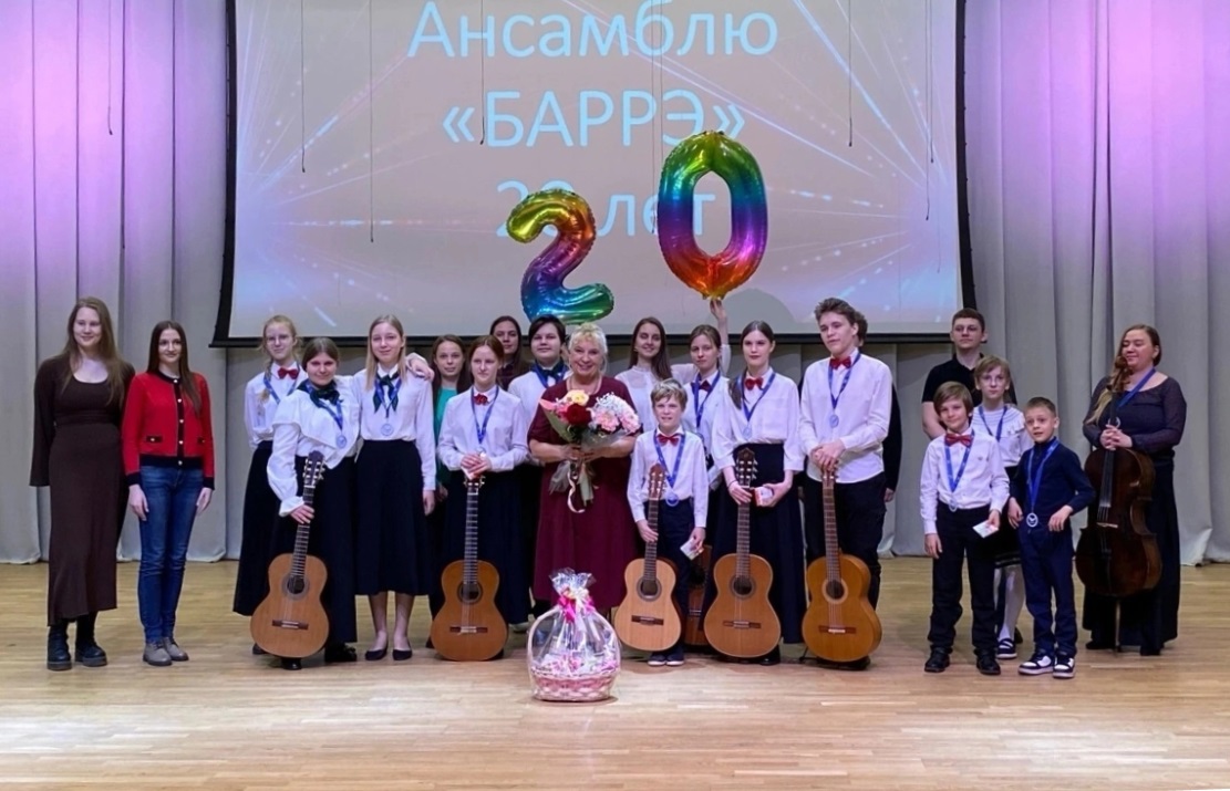 5 мая в концертном зале сосновоборской школы искусств « Балтика » ансамбль гитаристов «Баррэ» и руководитель коллектива — Лидия Андроник отметили 20-летие творческой деятельности.