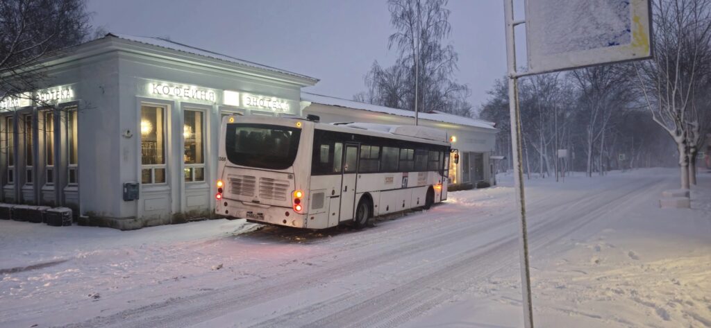 Непогода могла спровоцировать дтп с участием рейсового автобуса в городе Приозерске.